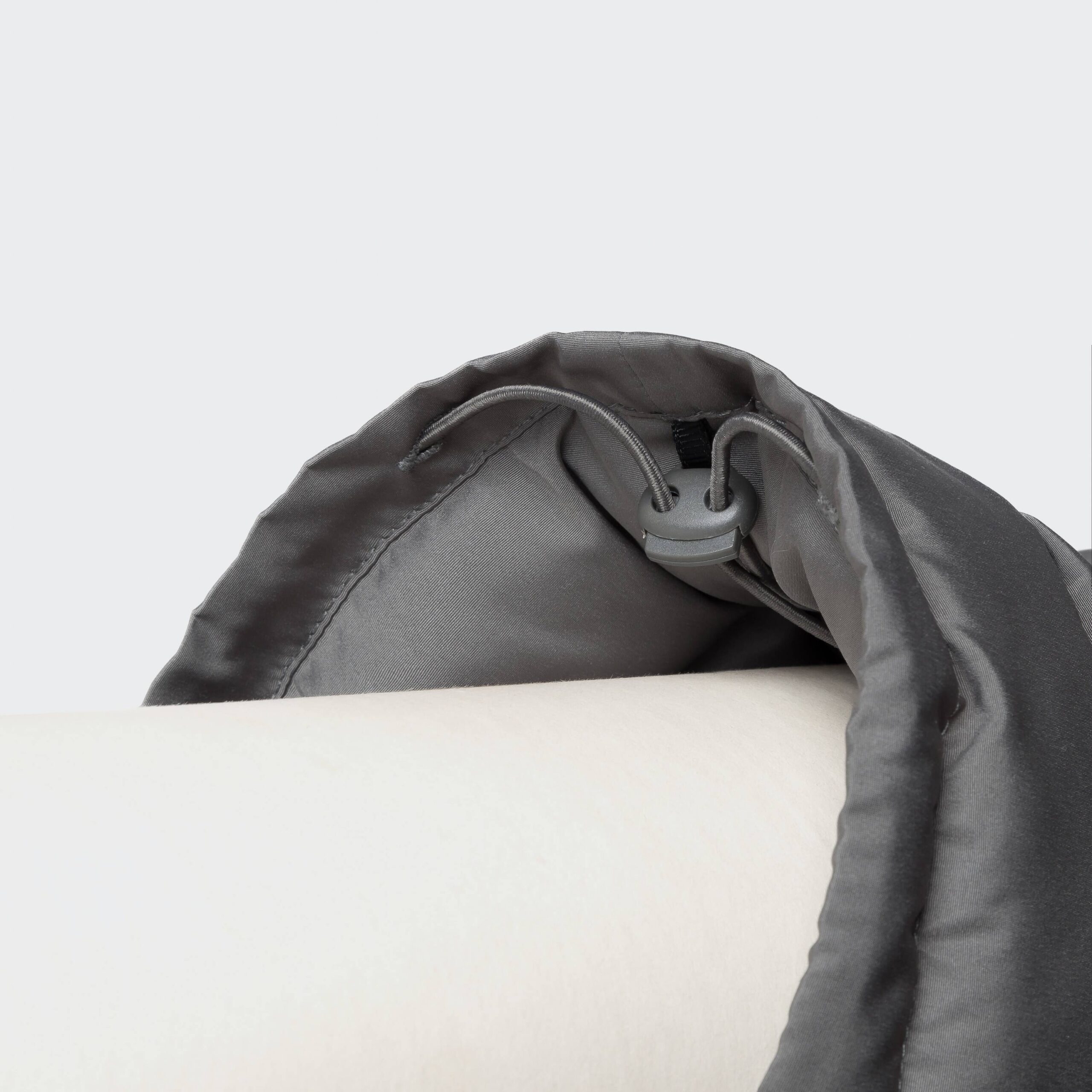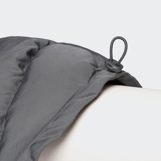 Veganer Hundemantel aus 100% nachhaltigen Materialien. Die extra warme Winter Hundejacke in dezentem Grau ist anstelle von Daunen mit Eco Puffer aus recycelten PET-Flaschen gefüttert.