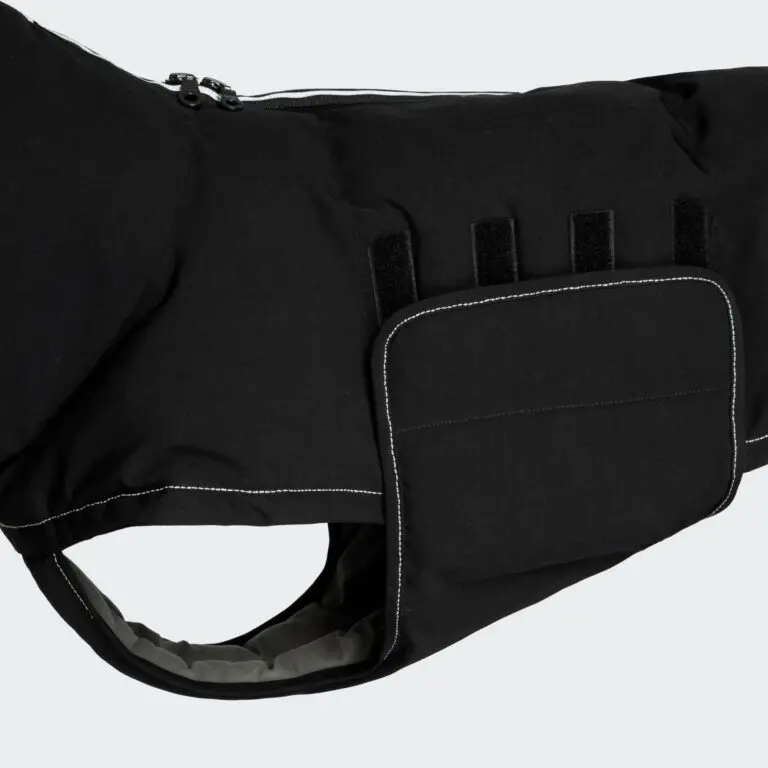 Die Zwei-Wege-Reißverschlussöffnung oben auf dem Rücken des Hundes ermöglicht einen einfachen Zugang zu verschiedenen Arten von Geschirren, während die elastische Kordel im hinteren Bereich sowie am Hals eine Feinabstimmung der Jacke für eine perfekte Passform ermöglicht. Auch toll als Jagdweste für Hunde.